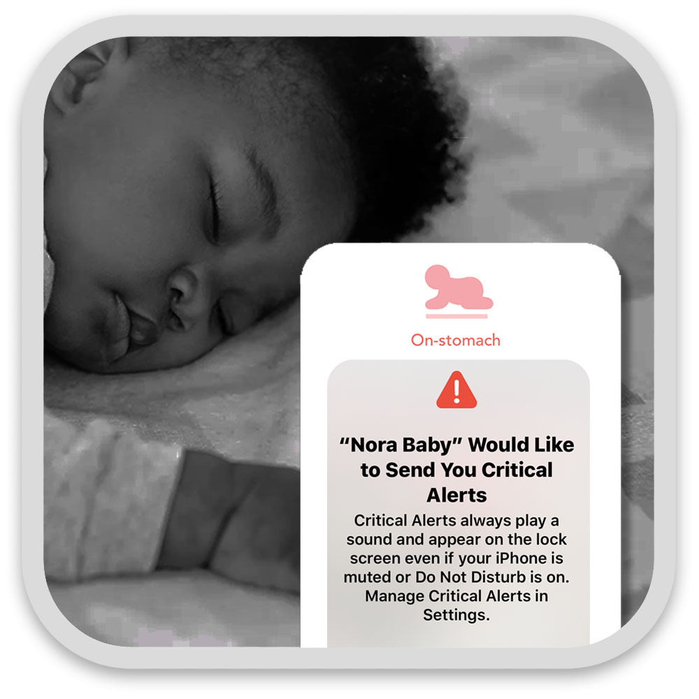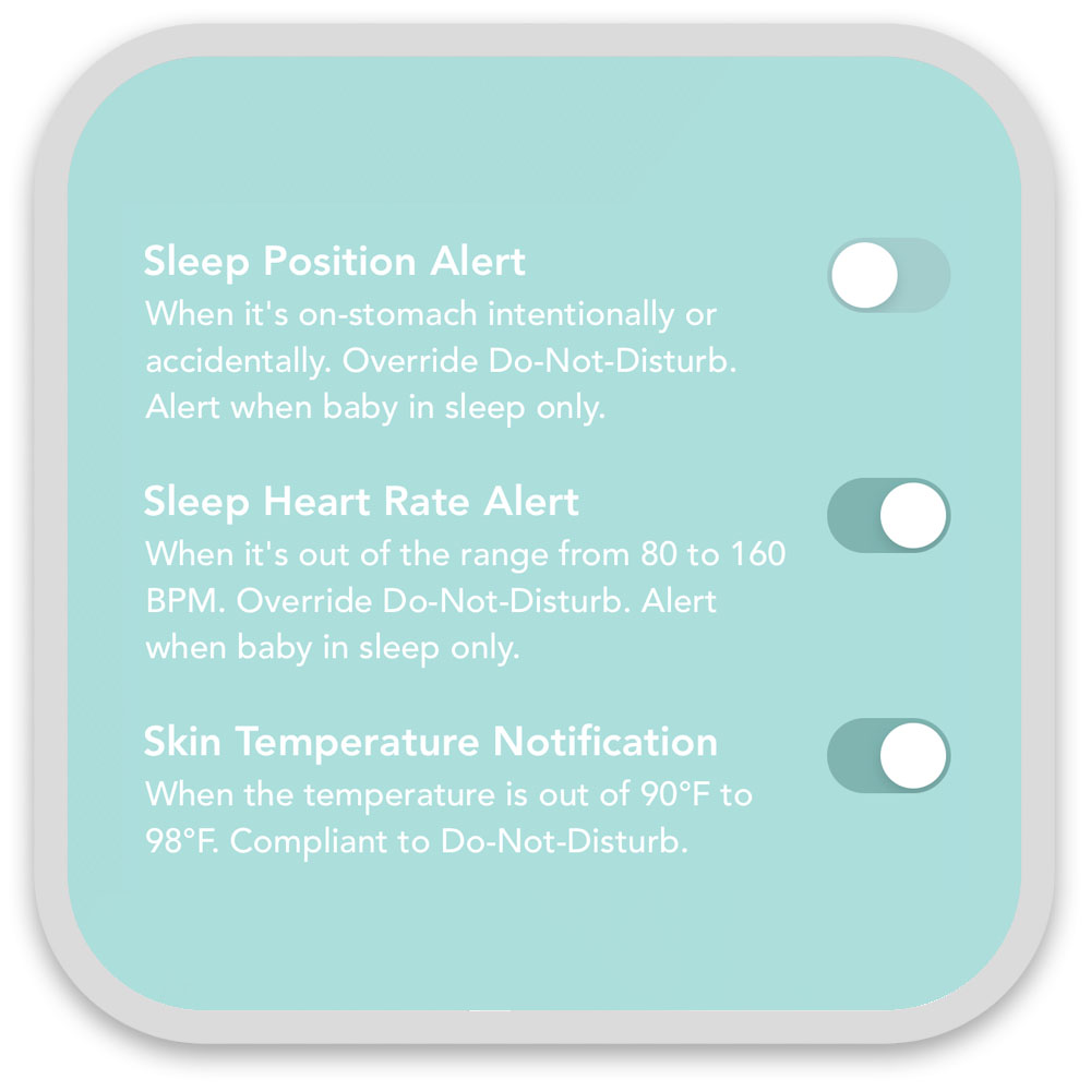 All critical alerts are smart ones to avoid false alarms. For example, it requires baby was in deep sleep and suddenly baby was on-stomach to trigger on-stomach alert. It's not that every time the sensor is flipped it will alert. Handpicked and authorized by Apple Inc., the iOS APP can post ‘Critical Alerts’ on your iPhone. It overrides the Do-Not-Disturb or Silent-mode. It makes sure your iPhone can produce a sound even in the middle of the night even you put on Do-Not-Disturb on purposely. For Android, please manually allow DND override in settings.