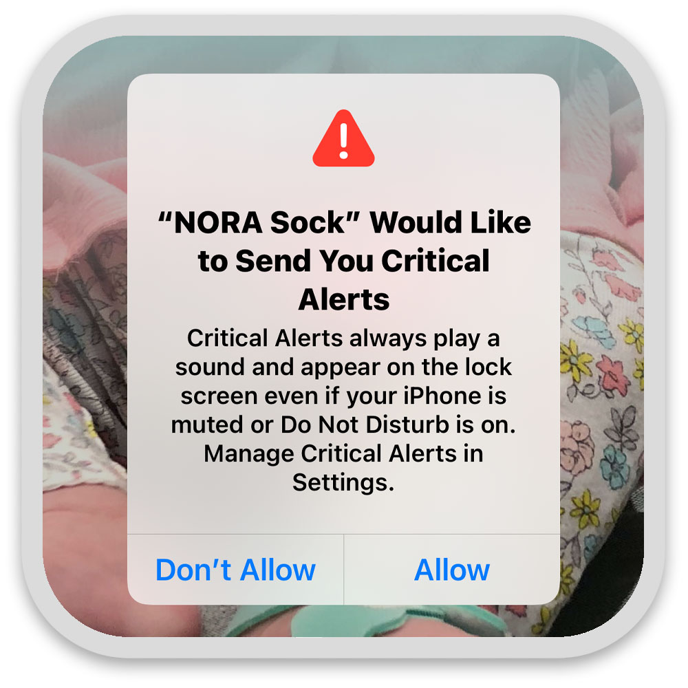 All notifications and alerts in the NORA Sock App can be individually turned on or off, so it fits into your situation without compromise. Heart rate and sleep position are 'critical alerts'. They can override Silent-mode and Do-not-disturb. The overriding can be enabled or disabled in iPhone and Android settings.