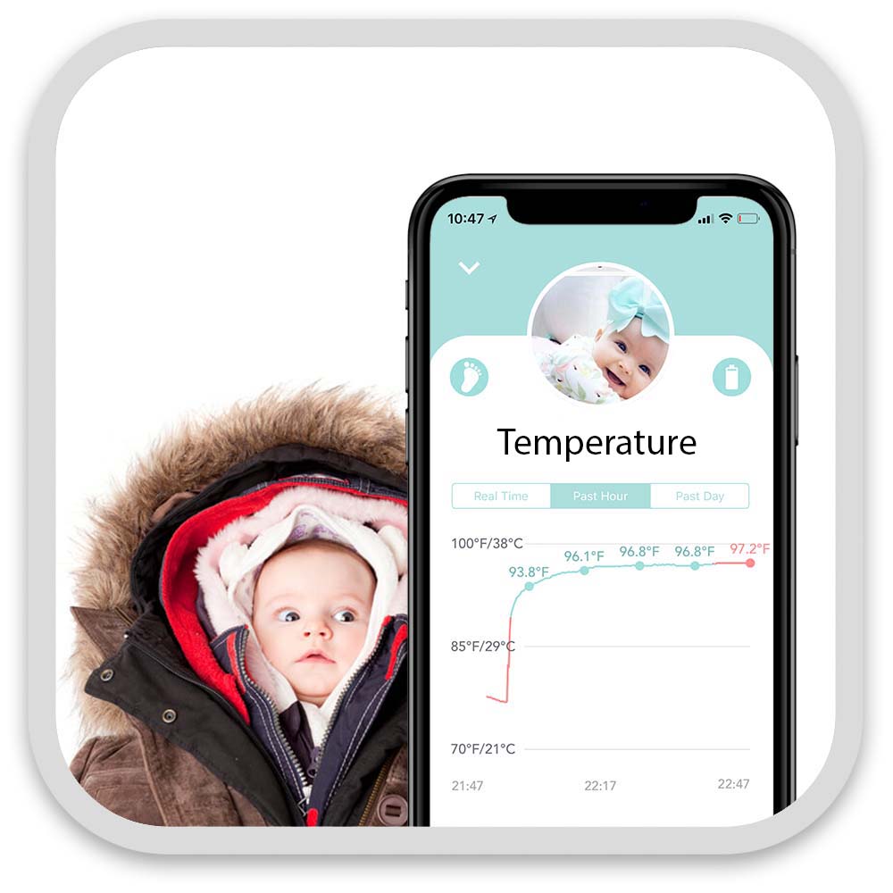 The NORA sensor measures the foot temperature, which is always lower than the body's core temperature. It's a good indicator that the baby is feeling too warm or chills, so you know to put on more or less. It's very useful when the baby is travelling in a vehicle.